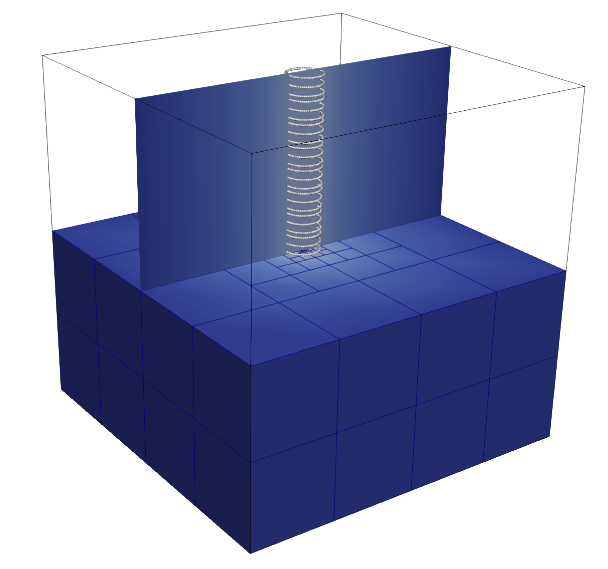 This gives an immersed two-dimensional interface in 3D, or an immersed one-dimensional interface in 2D, without meshing that interface explicitly in the background grid.